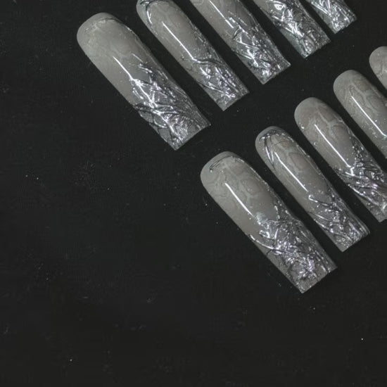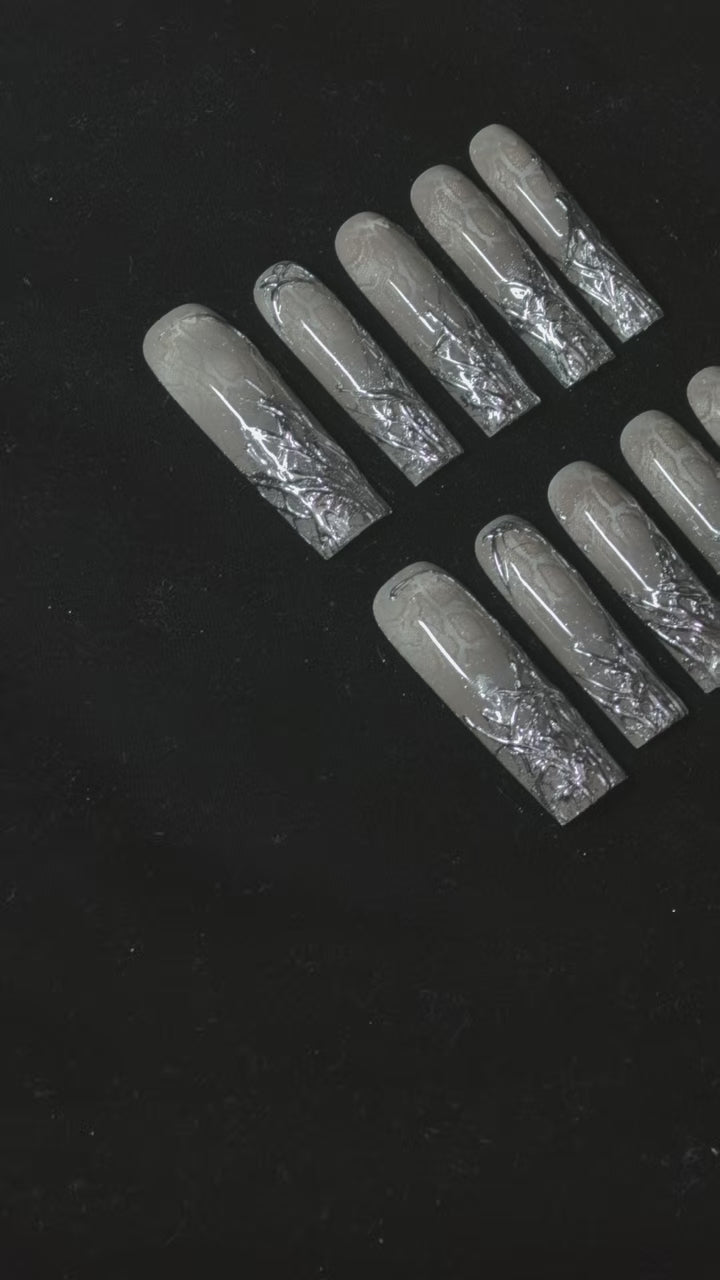 Design: Hand-painted 3D cracked glass effect+ metallic foil accents (each nail has one-of-a-kind detailing!).