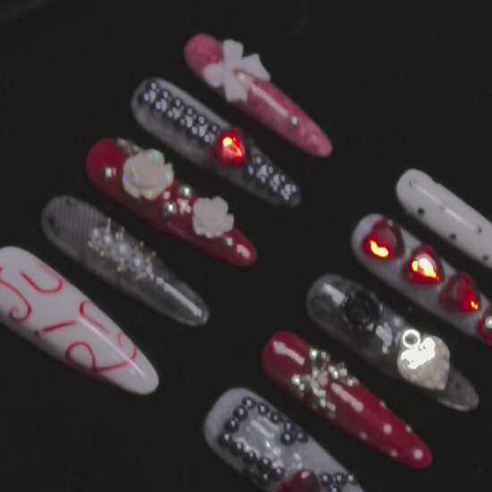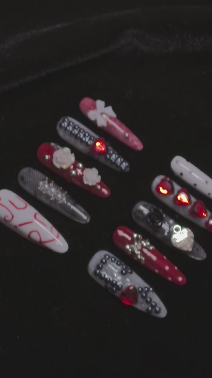 Tired of basic manicures? Our gothic - inspired press - on nails fuse edgy punk energy, Y2K nostalgia, and romantic details into a look thatās unapologetically you. Perfect for trendsetters who live for bold self - expression, these nails deliver: